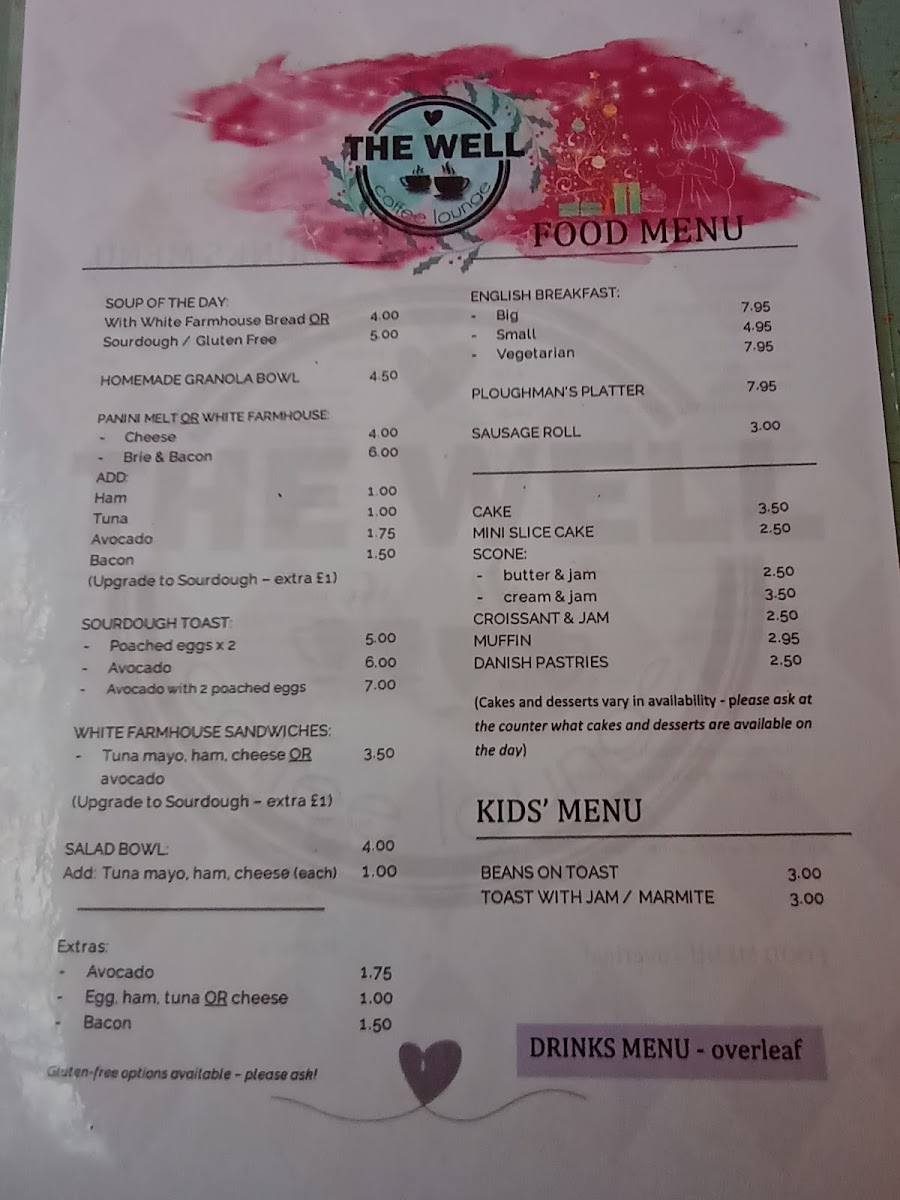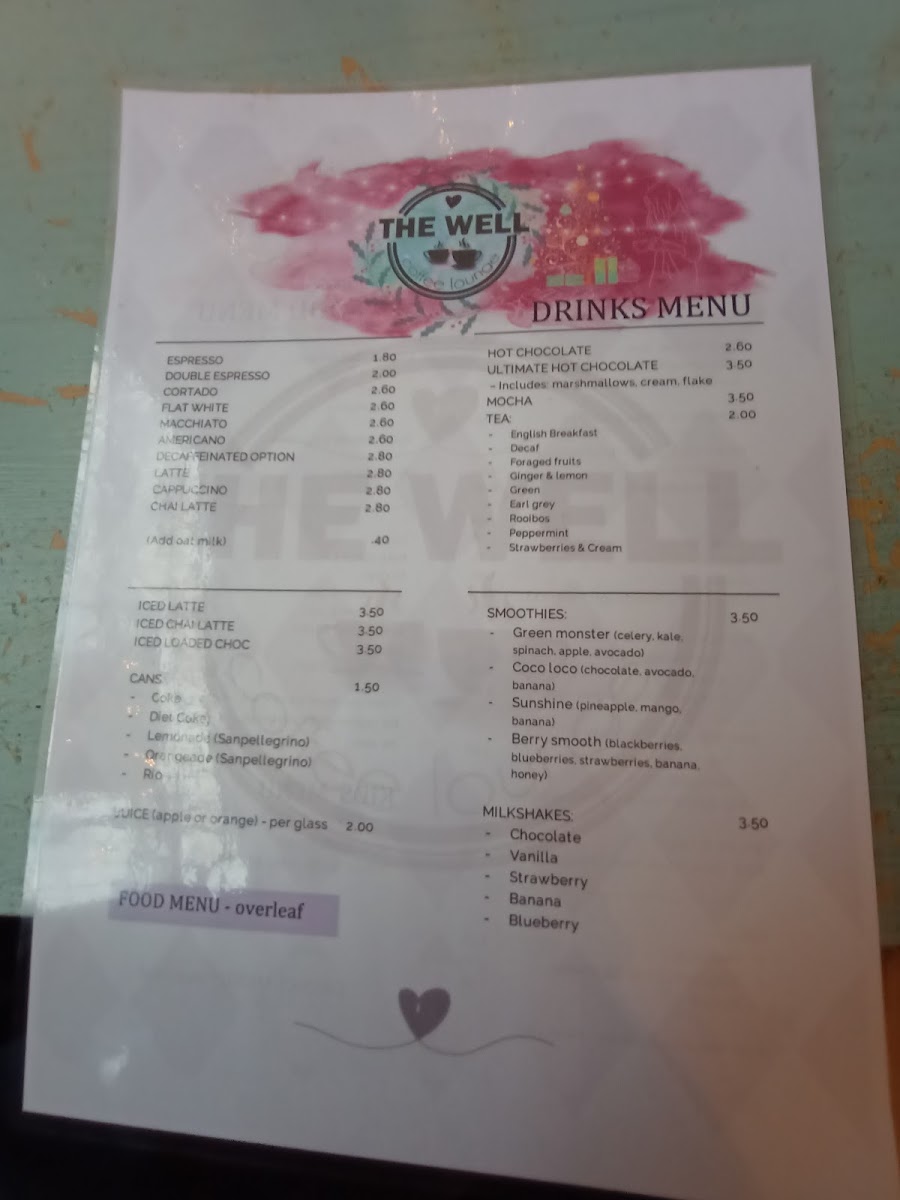 The Well Coffee Lounge Menu